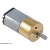 This brushed DC gearmotor has a long (0.365" or 9.27 mm), 3 mm-diameter D-shaped metal output shaft that matches Pololu's assortment of Pololu wheels and the Solarbotics RW2 rubber wheel. Alternatively, Pololu's 3mm universal mounting hub can be used to mount custom wheels and mechanisms to the gearmotor’s output shaft.