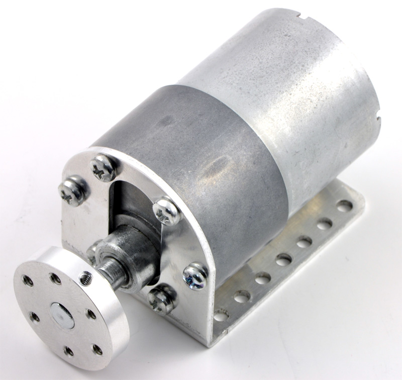 The face plate has six mounting holes evenly spaced around the outer edge threaded for M3 screws. These mounting holes form a regular hexagon and the centers of neighboring holes are 15.5 mm apart. we carry two brackets for these gearmotors: a stamped aluminum L-bracket (sold in pairs) and a sturdier, tombstone-style machined aluminum bracket (sold individually):