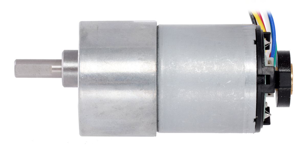 This powerful brushed DC gearmotor is available in six different gear ratios and features an integrated quadrature encoder with 64 counts per revolution (CPR) of the motor shaft. The motor and encoder portion is available by itself (no gearbox), and versions without the encoder are also available.