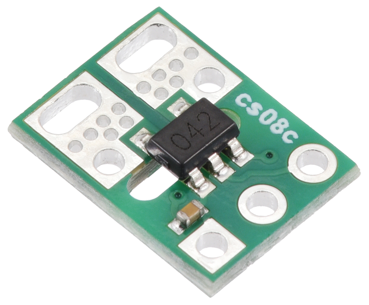In Pololu's tests, Pololu found that the micro carrier boards (cs08a and cs08c) could conduct about 25 A continuously, and compact carrier boards (cs08b and cs08d) could conduct about 30 A continuously, without reaching the thermal limit for the IC. Pololu's tests were conducted at approximately 25°C ambient temperature with no forced air flow.
