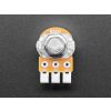 This Alpha 50K Linear potentiometer is a two-in-one, good in a breadboard or with a panel. It's a fairly standard linear taper 50K ohm potentiometer. It's smooth and easy to turn, but not so loose that it will shift on its own. Adafruit like this one because the legs are 0.2" apart with pin-points, so you can plug it into a breadboard or perfboard.