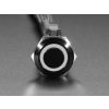 This is a 19mm Momentary version of the RGB pushbutton. Simply drill a 19mm hole into any material up to 0.45" thick and you can fit these in place – there's even a rubber gasket to keep water out of the enclosure. On the front of the button is a flat metal actuator, surrounded by a plastic RGB LED ring.