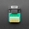 Make your own custom DE-9 cable or DE-9 interface with ease, using this DE-9 Plug to Terminal Spring Block Adapter. You get a nice solid PCB with a DE-9 plug and one line of push-spring terminal blocks that you can use with stranded or solid core wire to quickly assemble your own wiring jigs.