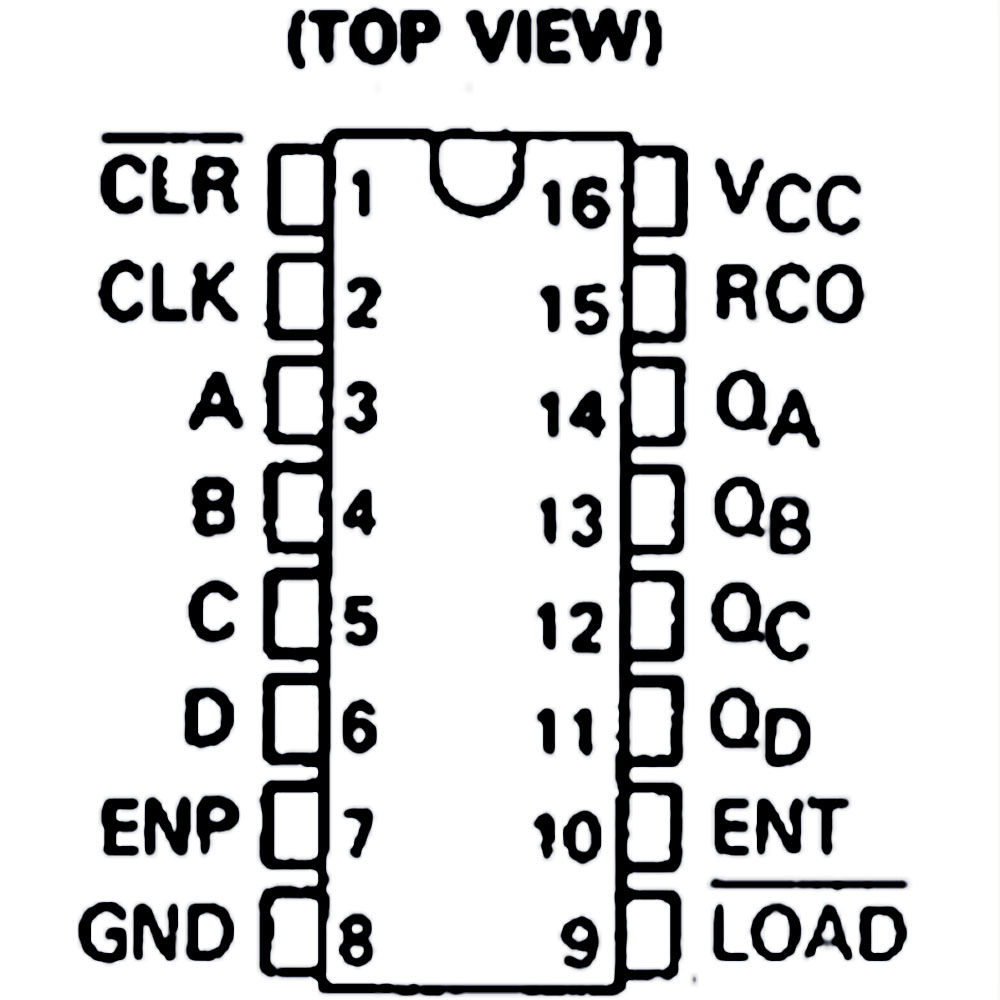 That didn’t bother me, but if it bothers you the 74LS161 has you covered. We glossed over it before, the chip had a LOAD pin (9). That load pin is also active low, just like the clear pin (1). Instead of using our reset vector to clear the chip to zeros, we could use it to load in a value like 0b1111. Pins 3,4,5, & 6 would all need to be tied HIGH.