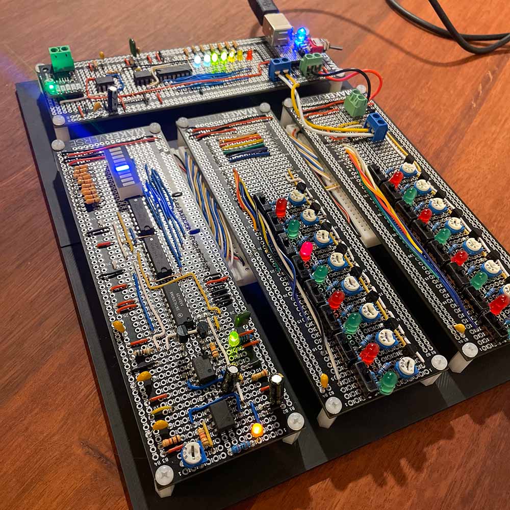 It’s a nice time to slow down and remind ourselves that all of this could have been avoided with a microcontroller and the liberal use of malloc. Commercial step sequencers are getting cheaper every year. The joy of this instrument, for me, was the dreaming and the debugging.