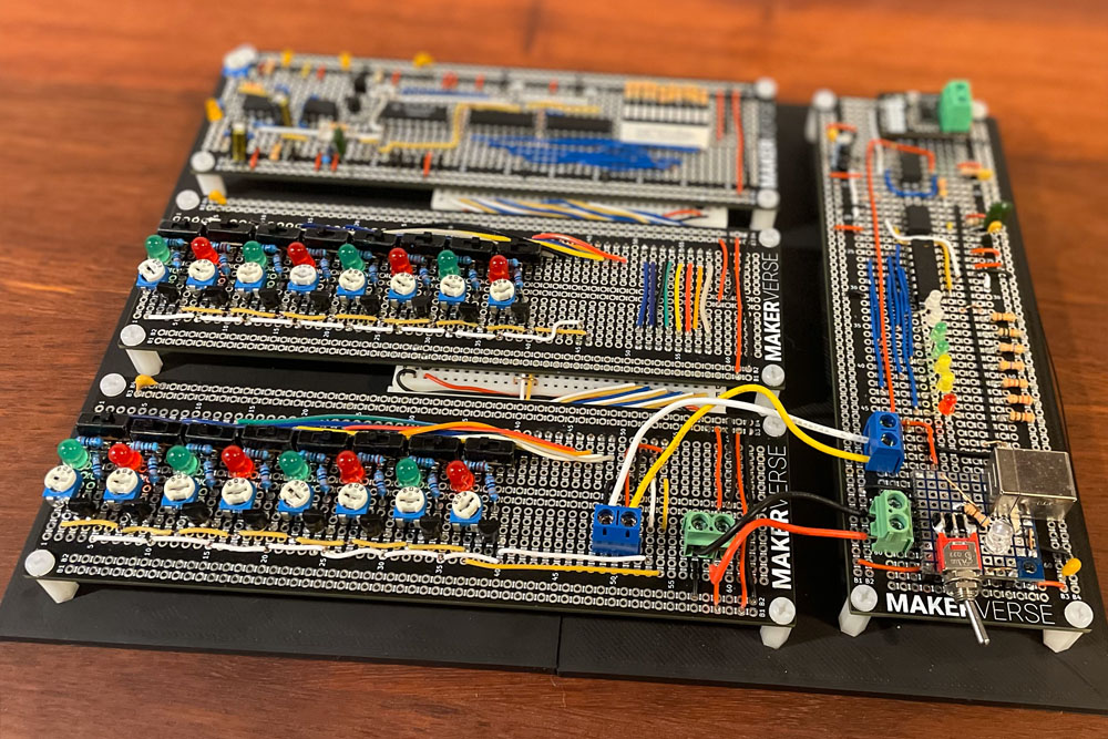 I used an SR latch as a substitute for my clock whenever I needed fine control over the timing of the circuit. Timing problems were a big challenge for me but only in the design stage. Some tempted by exploration may want to remix, dare I say improve, my design. If that’s you then this is a useful breadboard to have in the pocket.