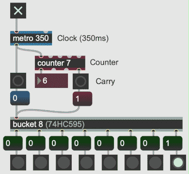 Originally I had this idea that, instead of a counter, I would feed the output of the second shift register back into the first. This would form a feedback loop where the same single HIGH bit would be stuck in the registers forever. The trick was to get that first bit into the registers on launch. I needed multiple initialisation vectors.