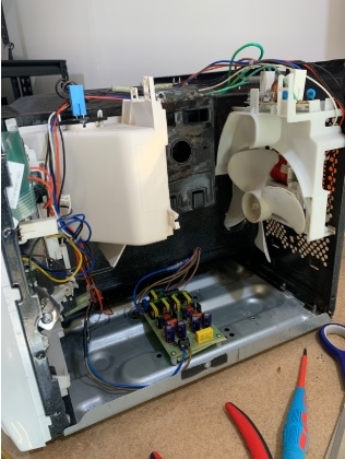 The things you’ll want to remove are the magnetron, HV transformer, and large capacitor (again, please be careful in safely discharging this before removing. I take no responsibility if you attempt this project). Then give everything a good clean.
