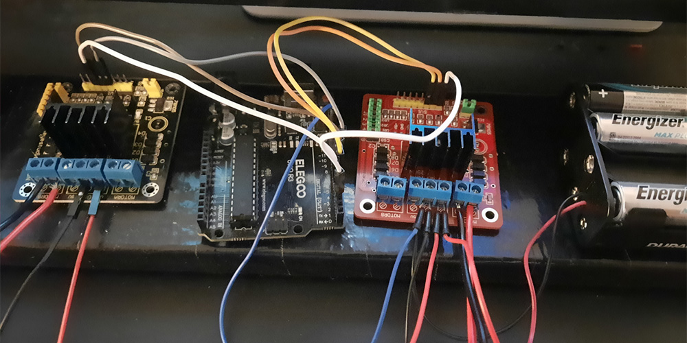Eventually, I switched to two L298N drivers (one per solenoid) with daisy-chained power for better distribution, then connected to an ELEGOO Arduino for computer control.