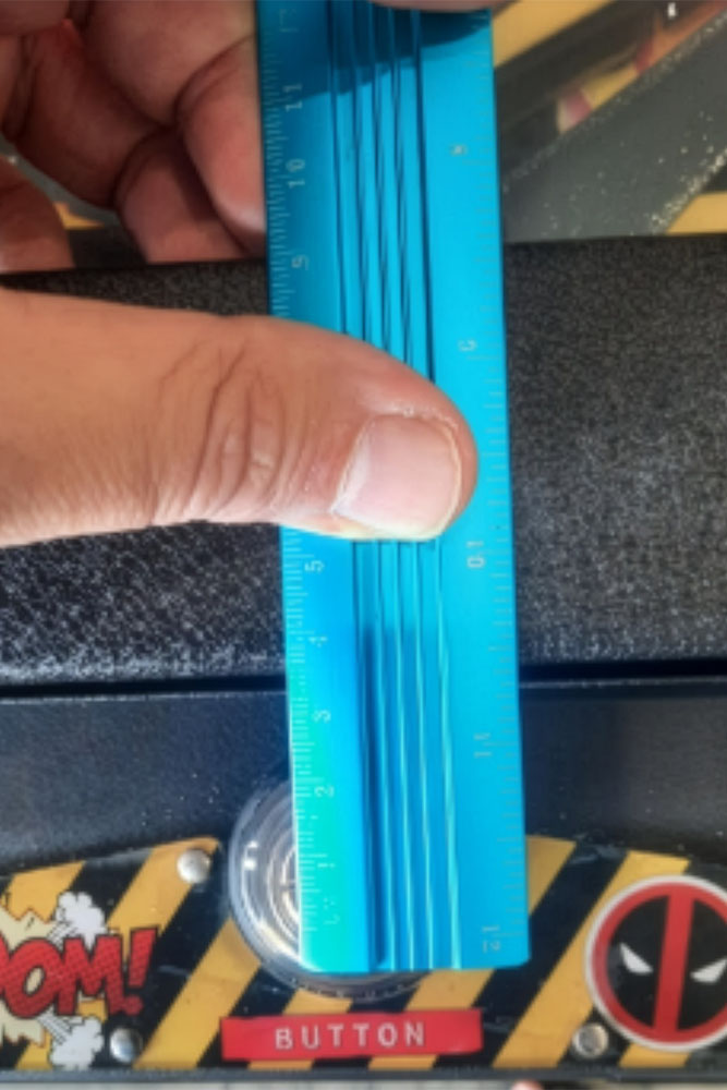 I was due to test this at Hoey Moeys pinball festival on 28th February 2026. The guy who organised the event was the one who suggested we move from directly pushing the buttons to using levers to trigger buttons to give a more streamlined appearance.