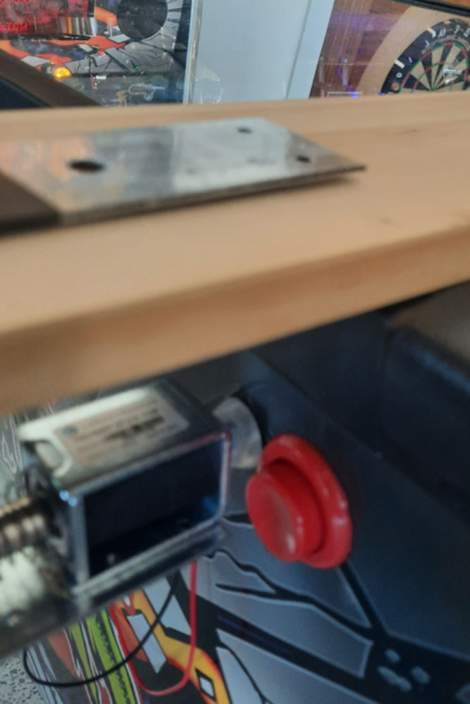 While preparing for a demonstration at the upcoming Coffs Harbour Pinball Festival on February 28th, the event organiser suggested relocating the solenoids to the top of the machine and using lever mechanisms. Machines are packed tightly at events, and this approach would reduce both footprint and visual clutter.