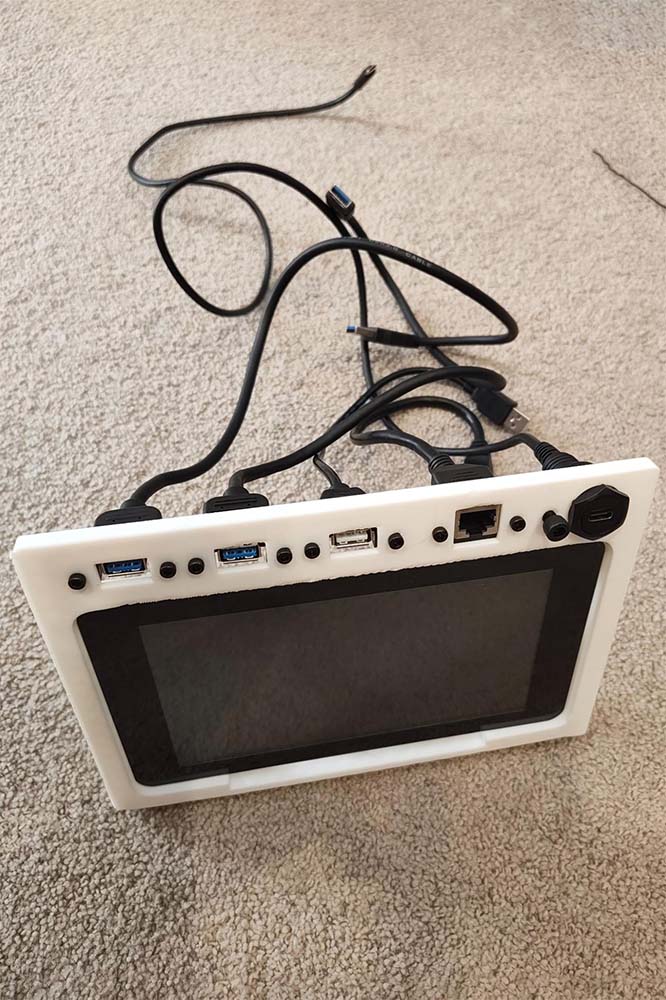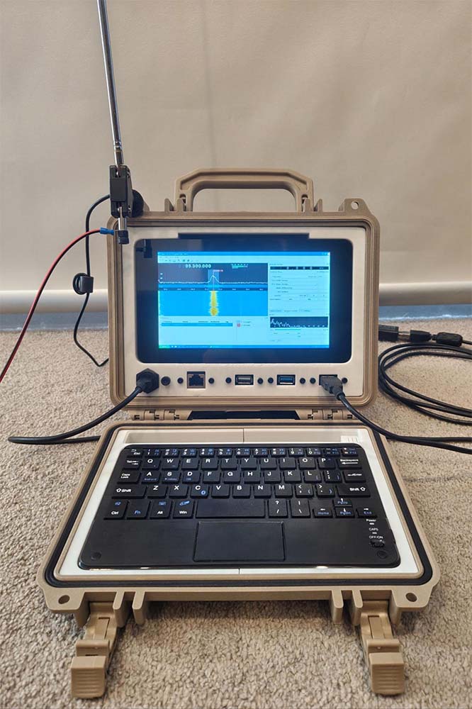 I settled on the simple Raspberry Pi Quick Kit, a 3d printed bracket/panel to mount USB ports, an ethernet port, a USB-C power delivery port, the Raspberry Pi itself, and a 7” touch screen within a Pelican 1150 hard case. I wanted to extend the use case of this computer to offer flexible support for SDR (Software Defined Radio) use out in the field - this is further explained below.
