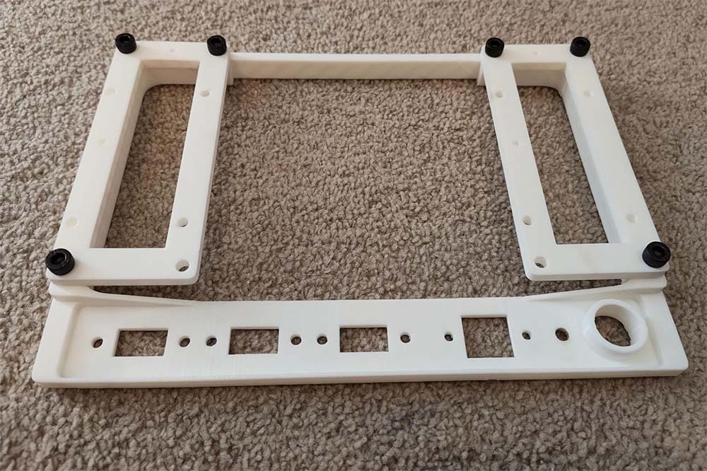 - Download and print Jay Doscher’s excellent 3d models for fixing the Pi, I/O connectors, and screen neatly into the Pelican case. I used the latest revision (V2) in my build and simply printed with PLA (what I had at hand) - if you’re serious about this, I would probably upgrade to a better filament, which can handle the adverse conditions faced when outdoors - something like ABS or even PETG would fare better than PLA. I managed to print the main panel on my Bambu Lab A1 Mini by rotating the model such that it fit within the build volume bounds of my print bed/arm. This did mean it was printing at an angle with support material, but it turned out fine.