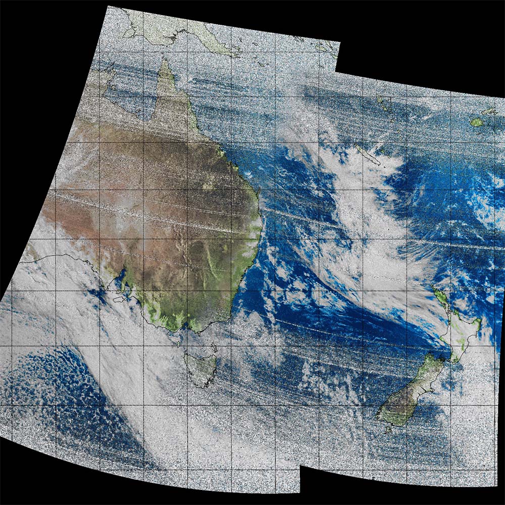 A composite image made from two separate NOAA weather satellite passes.