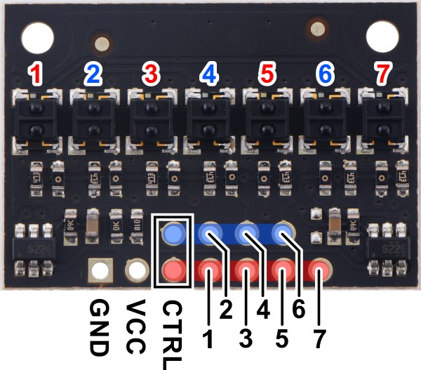 QTRX-HD-07RC Reflectance Sensor Array: 7-Channel, 4mm Pitch, RC Output, Low CurrentQTRX-HD-07RC Reflectance Sensor Array: 7-Channel, 4mm Pitch, RC Output, Low Current