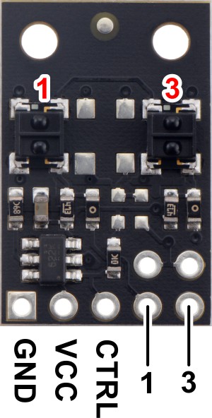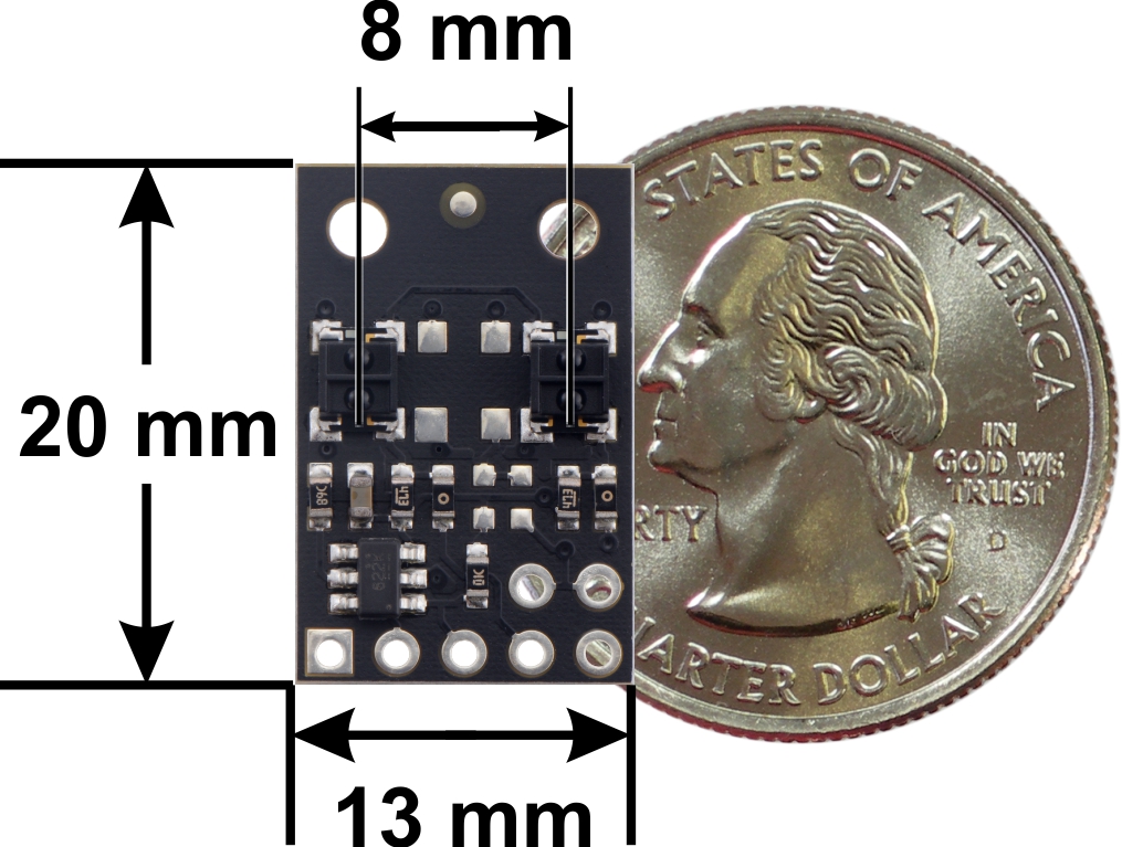 QTR-MD-02A Reflectance Sensor Array: 2-Channel, 8mm Pitch, Analog OutputQTR-MD-02A Reflectance Sensor Array: 2-Channel, 8mm Pitch, Analog Output