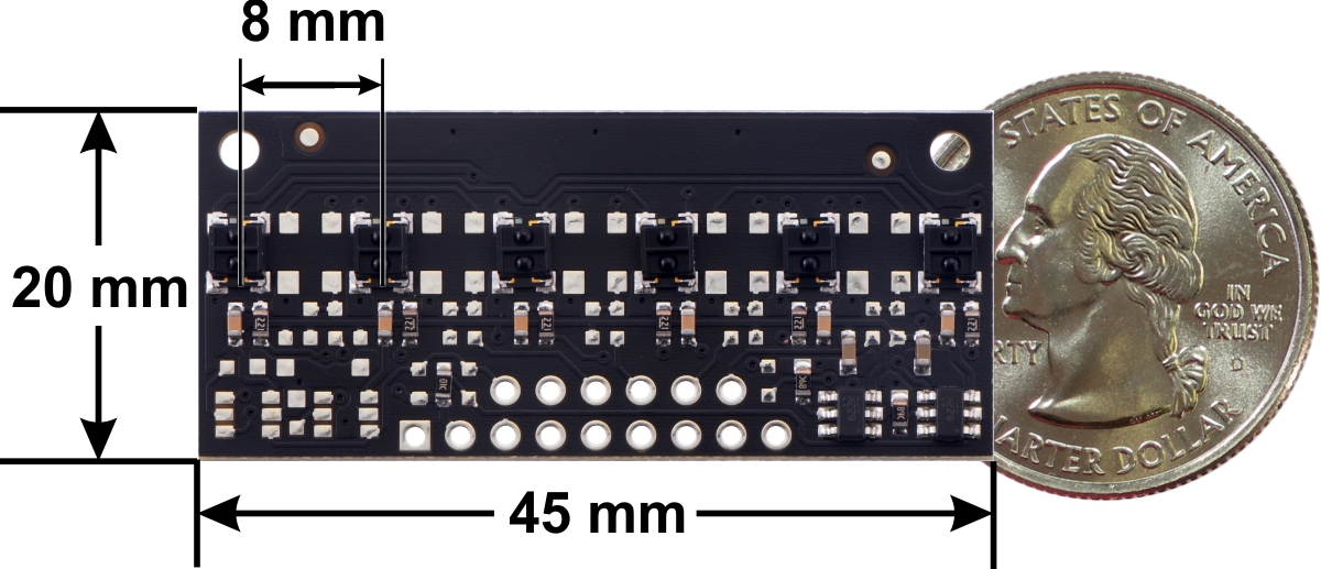 QTRX-MD-06RC Reflectance Sensor Array: 6-Channel, 8mm Pitch, RC Output, Low Current